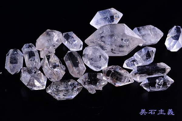 這批才是真正產自紐約州的Herkimer Diamond,尺寸非常迷你(不是賀基蒙就這麼迷你,而是這批尺寸就是這麼迷你),但是透度、亮度與晶體完整度真的超越一般雙尖水晶。